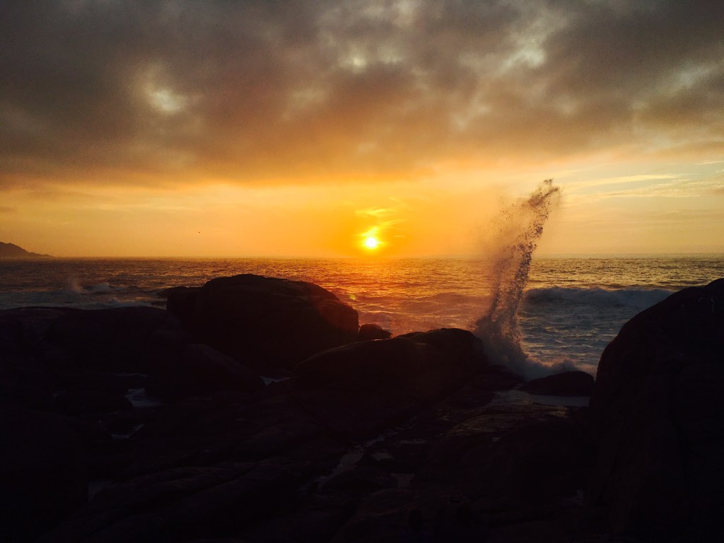 The church and the rocks are all one color. Climb a 68 meter hill and you can see the town, and the land you crossed to get here. Stay till sunset, and you will hear a man playing bagpipes and you will see the waves explode all over your view of the sun. Look back at the stone church and you’ll see its face light up with the dying day. Look around you, and you will see familiar faces from your time on this path, which, finally, for real, is over. There are no more endings. This is the third and last.
