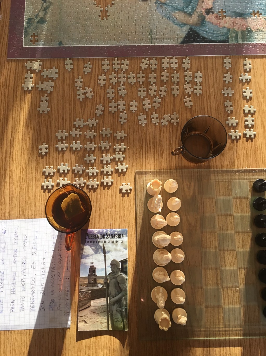 The donativo albergues have been my favorite because here, the love and hospitality that is ever-present on the camino in some form is closest to the surface. Luis keeps offering me tea while I sit in a room with photos of pilgrims on the walls. A previous hospitalero left an infuriating 3000 piece puzzle here ages ago, and I tried to get the last hundred beige pieces into their places before my resolve flagged.
