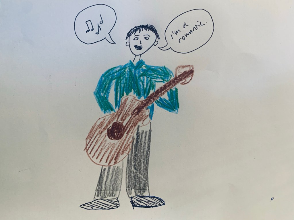 Maybe you write words too, the kind that don’t go with music. I play music like you, but I don’t write lyrics. I only write regular words. I would rather write an essay called “I’ll Be the Man to Marry You Someday” than a song. It’d be more efficient. I bet you’d tell me, “Oh, but you’re the best writer in the world and you’re such a great pianist, so you should write songs too,” and I’d be like “No, no, I’ve never cared to,” and you’d help me write a song, and it wouldn’t be that good, but you’d be proud of me and feel like you made the world a better place, by teaching me to write lyrics.